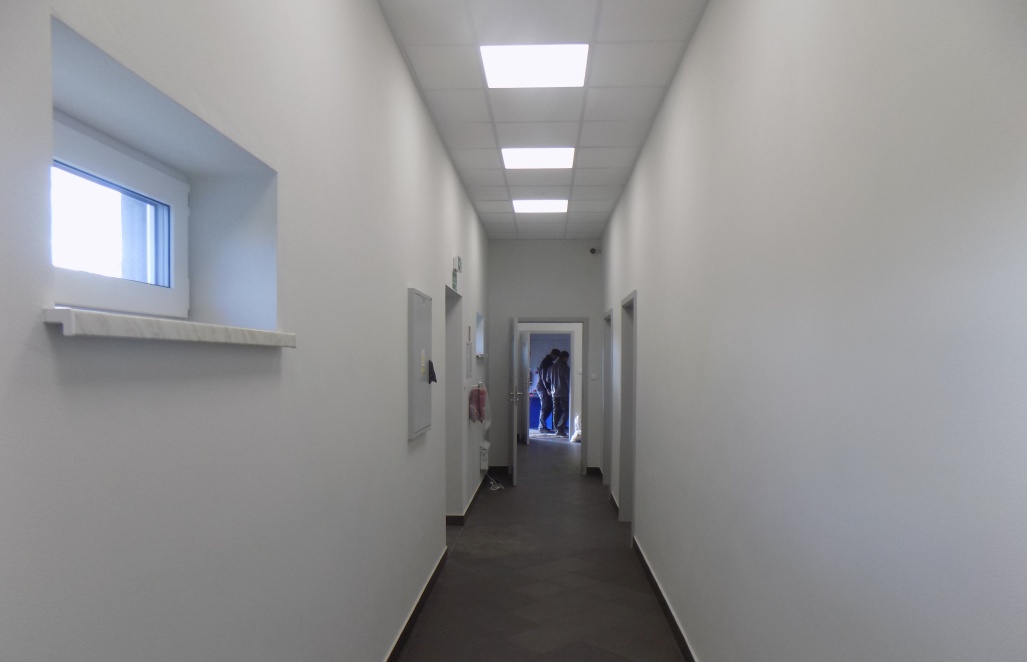 - kompletne prace wykończeniowe: posadzki z płytek gresowych, okładziny ścian z płytek ceramicznych, wykonanie sufitu podwieszonego, malowanie